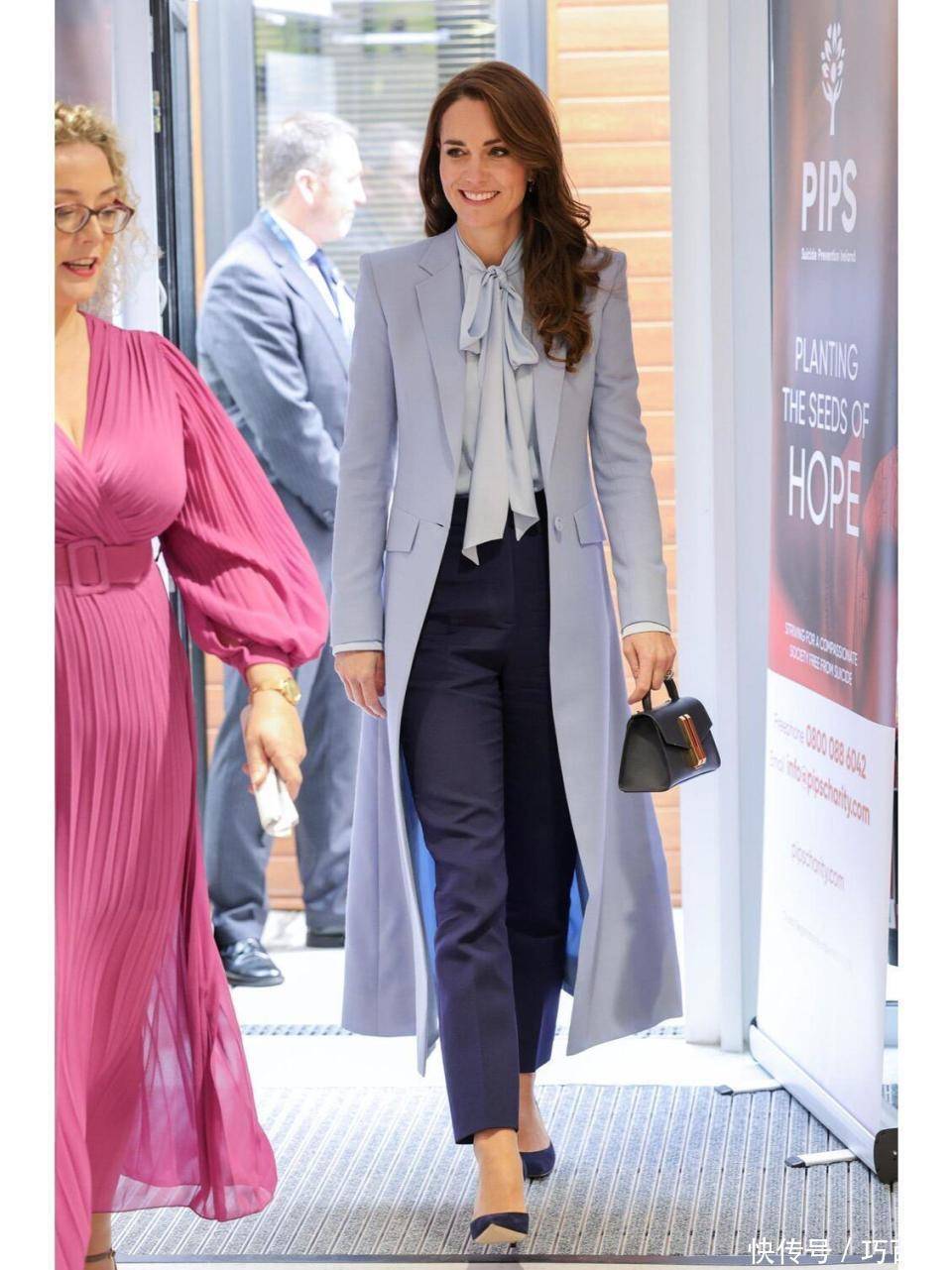 凯特王妃御用造型师辞职也涓滴没对她产生影响,这其中要道要素是她同件单品不同配色的有许多件。 和淡粉色“师出同门”的紫色衬衫上身,不雅感一绝,玄机、时尚、新潮,和纯玄色西装裤搭配不错达成娘man均衡,搭配玄色西装裤密致干练,两件单品组合,紫色飘带衬衫言之成理的成了主角,要是环球念念篡改东谈主们对紫色衬衫的探究欲,搭配白色长裤恶果也很nice。