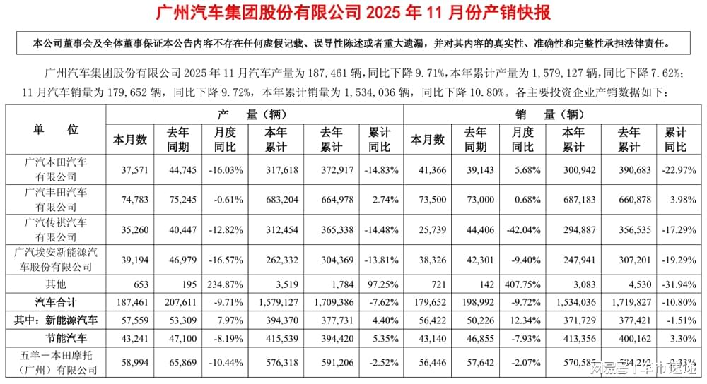 广丰成销冠,传祺月销垫底,广汽集团11月销量出炉